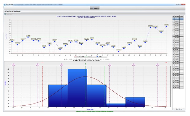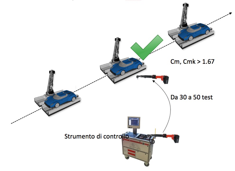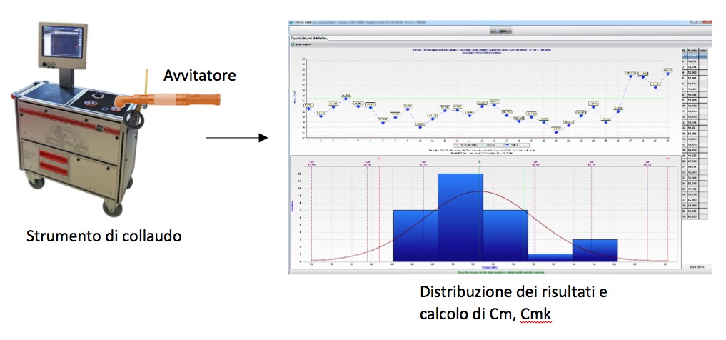 Misurare il Cp, Cpk significa controllare il risultato del processo, in questo caso la coppia residua misurata sui giunti serrati dagli avvitatori: