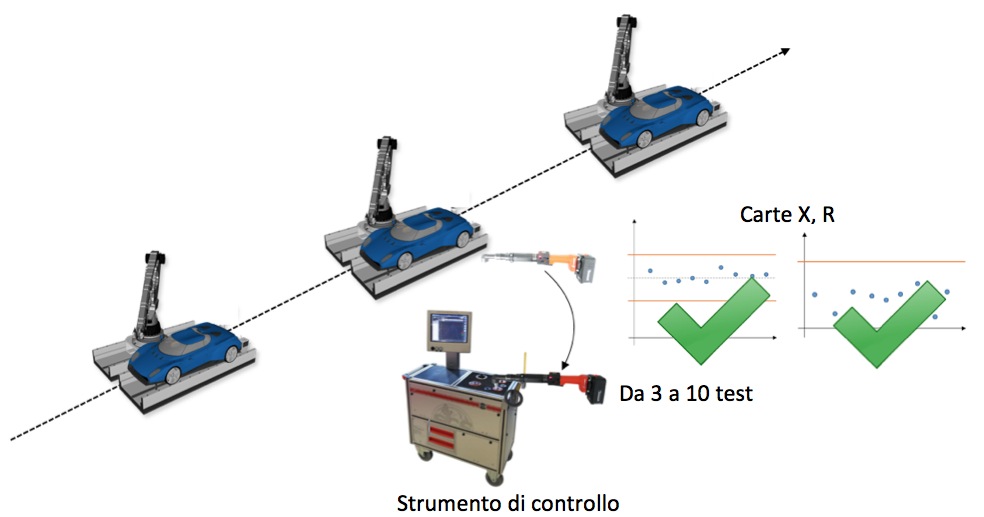 Una linea di produzione di automobili ha alcuni serraggi critici, effettuati con avvitatori (elettrici, pneumatici, chiavi dinamometriche).