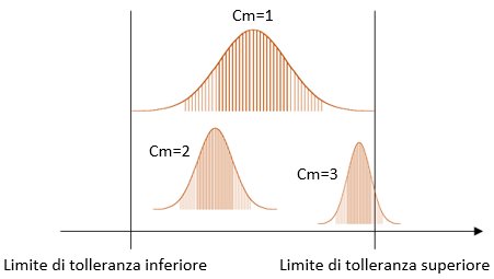 Il Cm e il Cp descrivono la ripetibilità di una macchina o un processo relativo alla classe di tolleranza, senza considerare il suo centraggio rispetto al valore nominale.