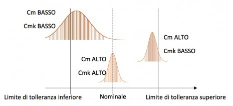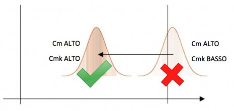 Un Cmk o Cpk alto indica che la macchina o processo ha una bassa dispersione, ed è ben centrato in mezzo all’intervallo di tolleranza.