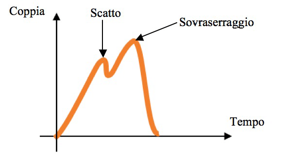 - Dopo lo scatto applicano nuovamente coppia, e in genere producono un sovraserraggio dipendente dall’operatore. Si può prevedere una coppia target più bassa, ma la coppia finale diventa conseguenza diretta dell’azione dell’operatore invece che della calibrazione della chiave stessa